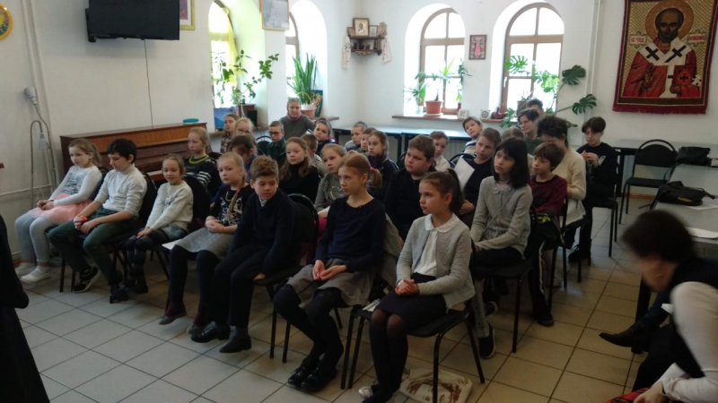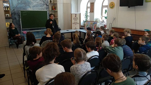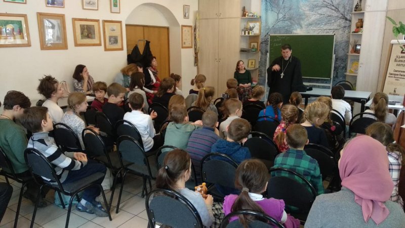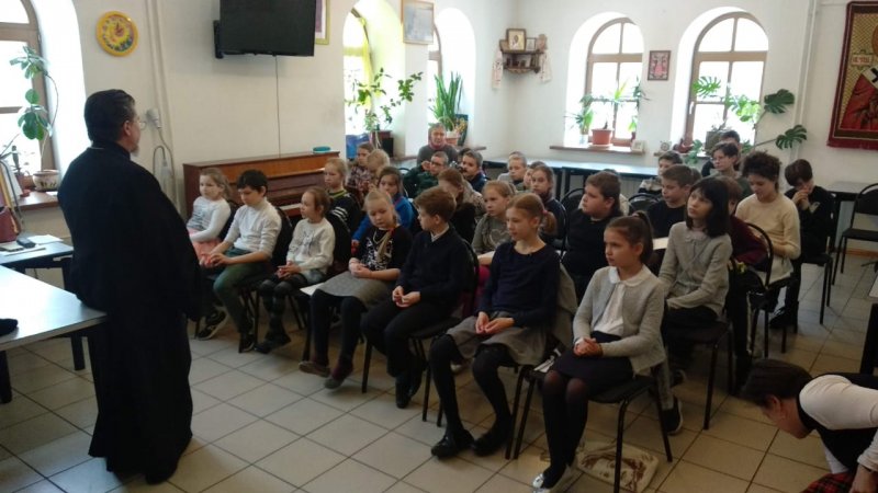 Беседа была запланирована в формате "круглого стола". Однако большое количество ребят определило форму более академическую. Иерей Виктор говорил с детьми о Великом посте. Ведущая "круглых столов" директор Воскресной школы Гришакова Светлана Ивановна в начале беседы обратилась к детям с вопросами об их понимании поста. Вполне ожидаемыми были ответы об ограничении в скоромной пище.