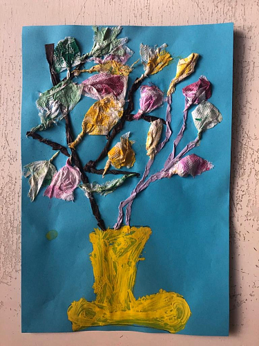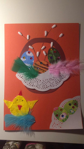 Особенно следует отметить онлайн-поздравление детей младшей группы в день Пасхи. Получился трогательный миниконцерт «Пасхальный букет», смонтированный учащимися старшей группы.