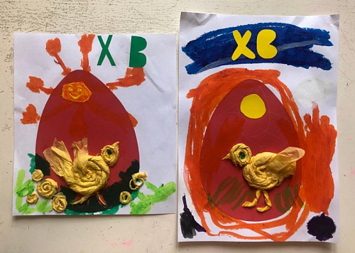 Дошкольная группа детей не осталась в стороне. Родители детей дошкольной группы объединились в общем чате WhatsApp, где до сих пор ведется живая переписка и творческая деятельность. Преподаватели дошкольной группы Турасова Евгения Фиделевна, Романцова Юлия Сергеевна, Красильникова Людмила Ивановна постоянно предлагают родителям творческие мастерские, аудио и видеофайлы для семейного прослушивания и просмотра. Очень популярны среди дошкольников оказались следующие аудиоматериалы: «Чудесные приключения Вари и Глеба», «Познаем мир с Верой и Фомой», «Пасхальные рассказы русских писателей». Педагоги постоянно делятся информацией из различных интернет ресурсов. Детям предлагают знакомиться с живописью, музыкой, литературой. Особенно большой популярностью в группе пользуются живые мастер-классы. Педагоги и родители выкладывают обучающие уроки по изготовлению различных поделок. Так сообща готовились к Пасхе: лепили, рисовали, вырезали. И здесь же в чате устраивали выставку поделок.