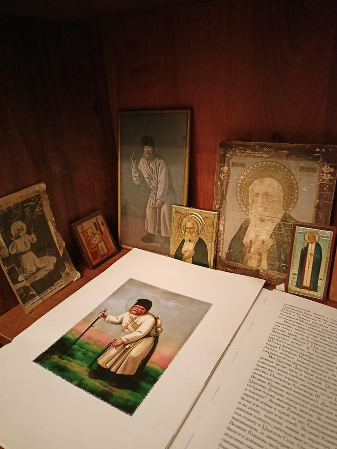 В библиотеке храма была представлена выставка икон преподобного Серафима Саровского. Руководитель школьной иконописной мастерской Островская Алла Викторовна познакомила собравшихся со сложившейся традицией иконописания образа святого.