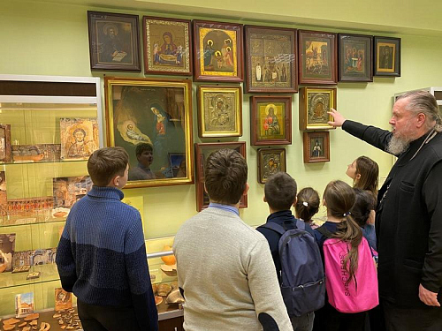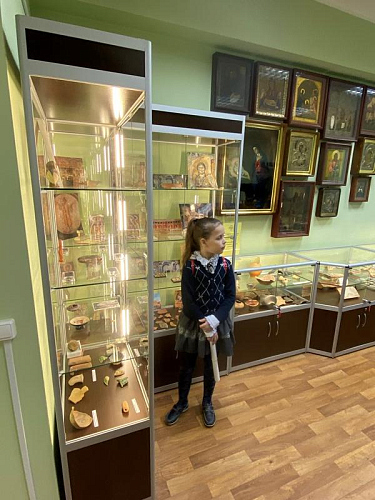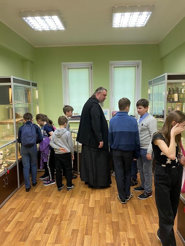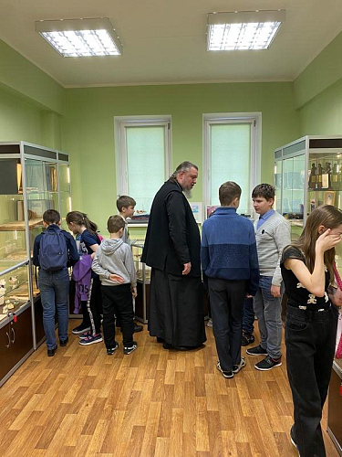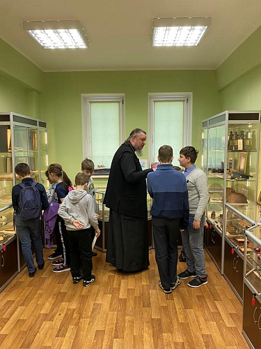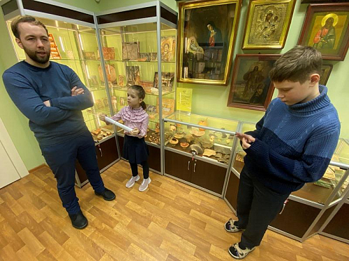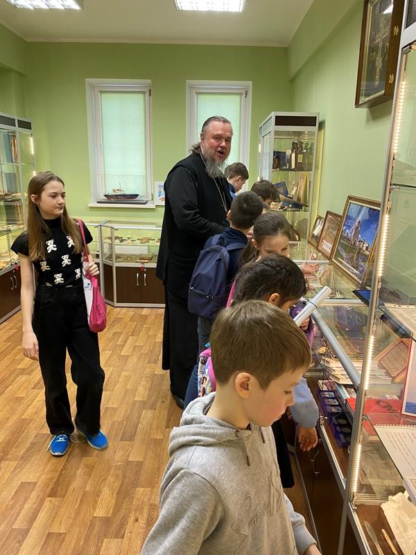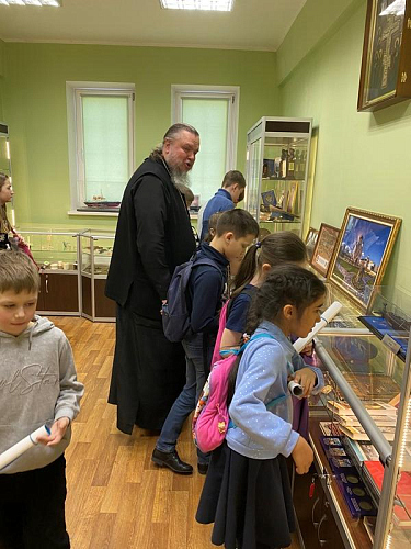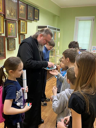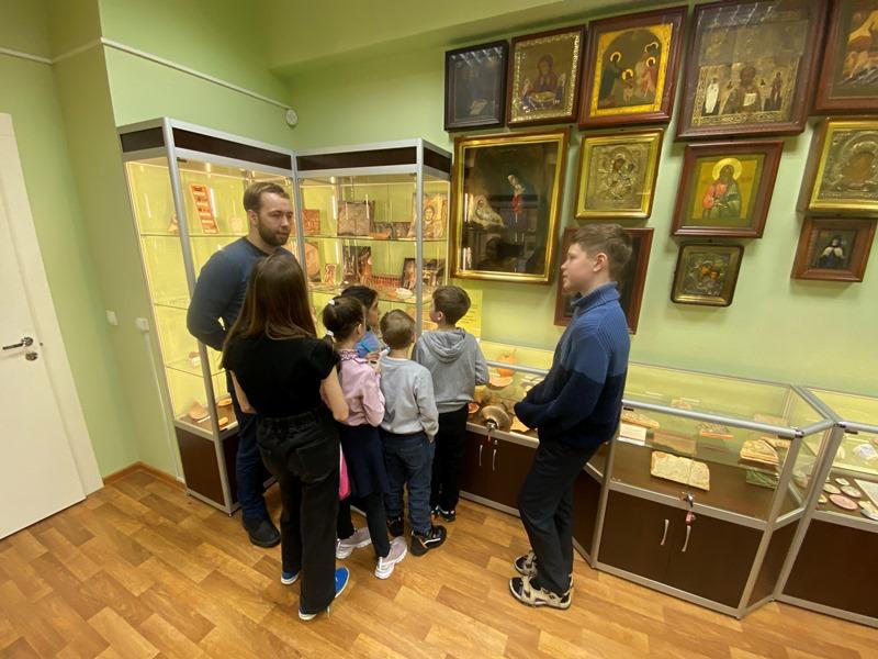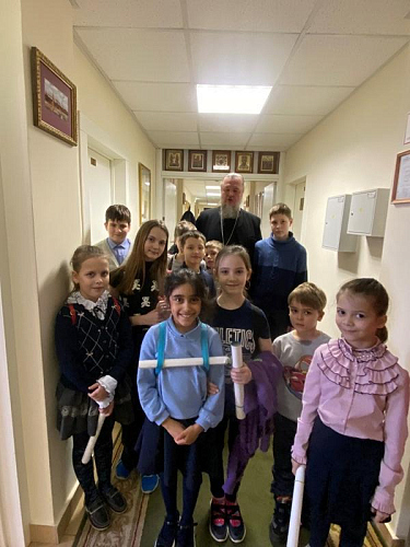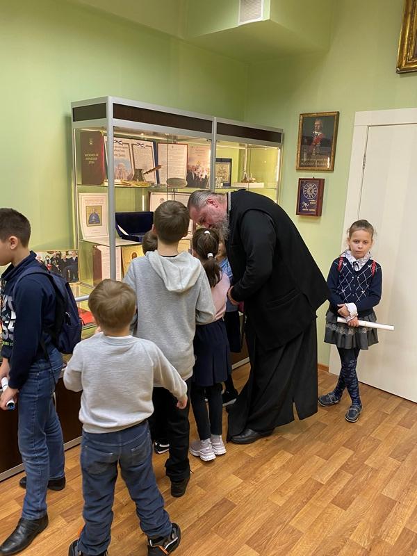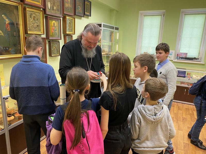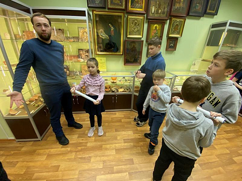 Затем воспитанники Воскресной школы парами проследовали в церковно-археологический музей Патриаршего подворья. Ребятам очень понравился рассказ о древних предметах, о том, как их использовали в прошлом, а когда в конце мероприятия игумен Дамиан угостил их конфетами. После этого все довольные и счастливые отправились домой.