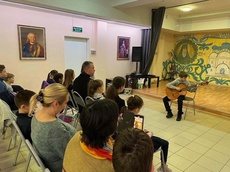 12 марта 2023 года, после окончания основных занятий в Воскресной школе храма святого праведного воина Феодора Ушакова в Южном Бутове, ребята проследовали в актовый зал дома причта, где приняли участие в праздничном концерте, посвященному Дню православной книги.