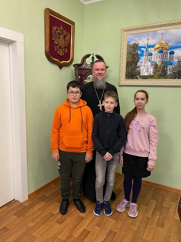 26 декабря 2021 года настоятель храма святого праведного воина Феодора Ушакова в Южном Бутове игумен Дамиан (Залетов) провел несколько занятий в Воскресной школе патриаршего подворья.
