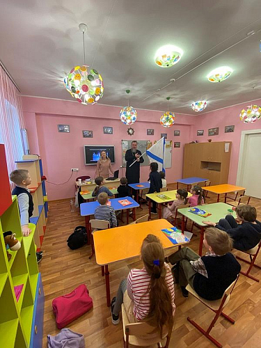 Ребята с интересом выслушали рассказ об Андреевском флаге, добавляли сведения, которые они знали, сами задавали интересующие их вопросы.