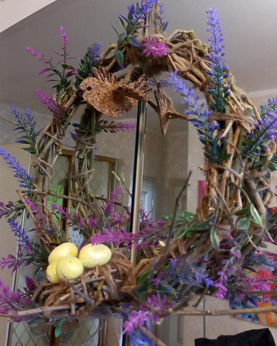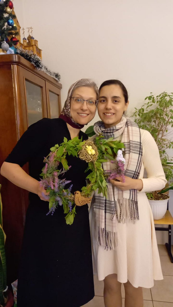 12 мая 2024 года после Божественной Литургии в Воскресной школе храма преподобного Моисея Мурина в Южном Бутове состоялся мастер-класс по созданию пасхальных венков для украшения интерьера: его провела руководитель кружка изобразительного искусства Татьяна Кизка.