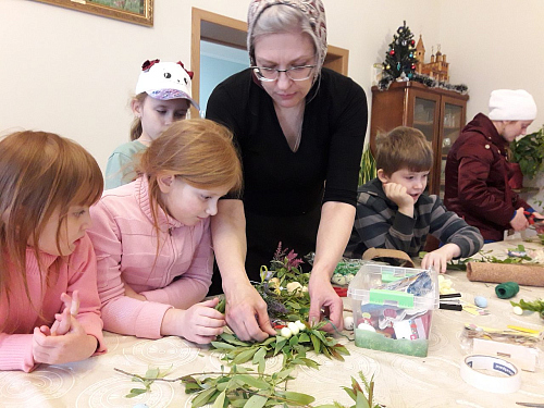 Сделанные своими руками венки дети и взрослые могли забрать домой, а одним венком была украшена дверь церковной лавки храма.