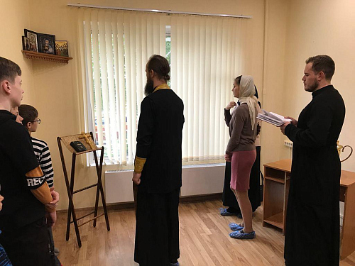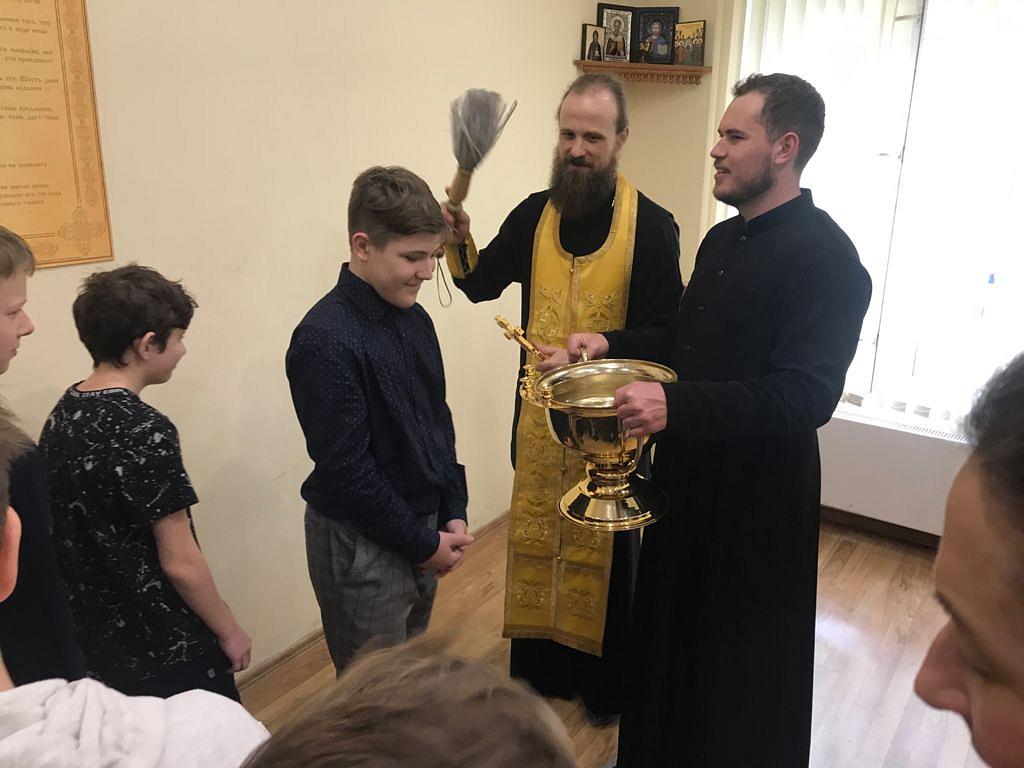 Перед общим собранием был отслужен молебен на начало учебного года, в котором приняли участие как воспитанники школы, их родители, педагоги, так и приглашенные гости праздника.
