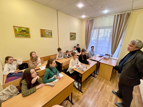 16 марта 2025 года в Воскресной школе при храме преподобной Евфросинии, великой княгини Московской, в Котловке прошла лекция на тему: «Культура речи». Мероприятие для учеников старшей группы провел советский актер театра и кино Георгий Михайлович Третьяков.