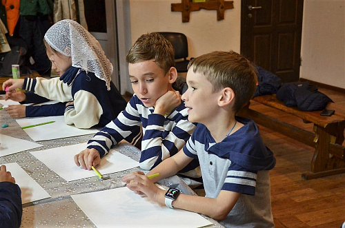 Ребята погрузились в атмосферу творчества великого поэта и, по окончании беседы, приступили к рисованию карандашом набросков картин. Учащиеся закончат свои работы самостоятельно и в конце сентября в Воскресной школе состоится выставка рисунков, лучшие из которых будут отправлены на викариатский этап конкурса «Красота Божьего мира».