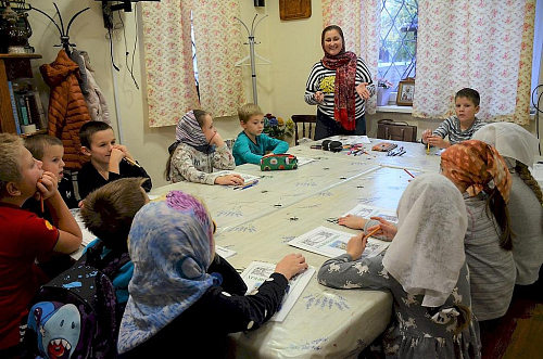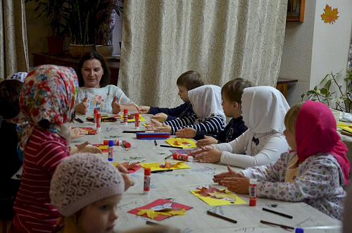 В субботу занятия проведены с детьми дошкольного и младшего школьного возраста. На Уроках доброты и Законе Божьем самые юные воспитанники слушали добрые рассказы и совершали первые шаги в духовном познании. На занятиях по пению осваивали нотную грамоту и развивали певческие способности в упражнениях, песенках. Домой дети ушли с поделками, изготовленными на творческой мастерской.