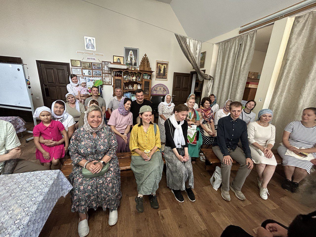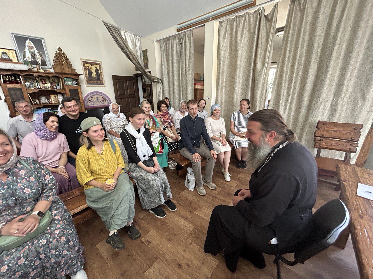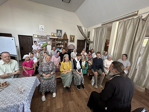 Продолжилось занятие в помещении Воскресной школы, где иерей Иоанн ответил на вопросы и побеседовал с участниками о предстоящем курсе.