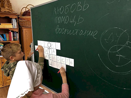 Ребята рассуждали, какие качества характера следует воспитывать в себе, следуя наставлениям родителя земного и Отца Небесного, воплотив итог беседы в кроссворде, где были обозначены основные качества, передаваемые от отца к своим детям: любовь, защиту, смелость, цель в жизни.