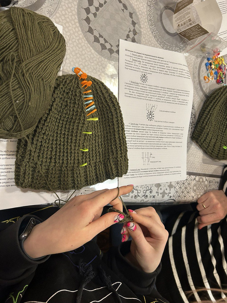 В завершение организаторы поблагодарили всех присутствующих за участие и стремление помочь нашим воинам и сообщили, что готовые шапки можно принести в свечную лавку храма Священномученика Ермогена в Зюзине. Все они будут отправлены по месту назначения с очередной партией гуманитарного груза.