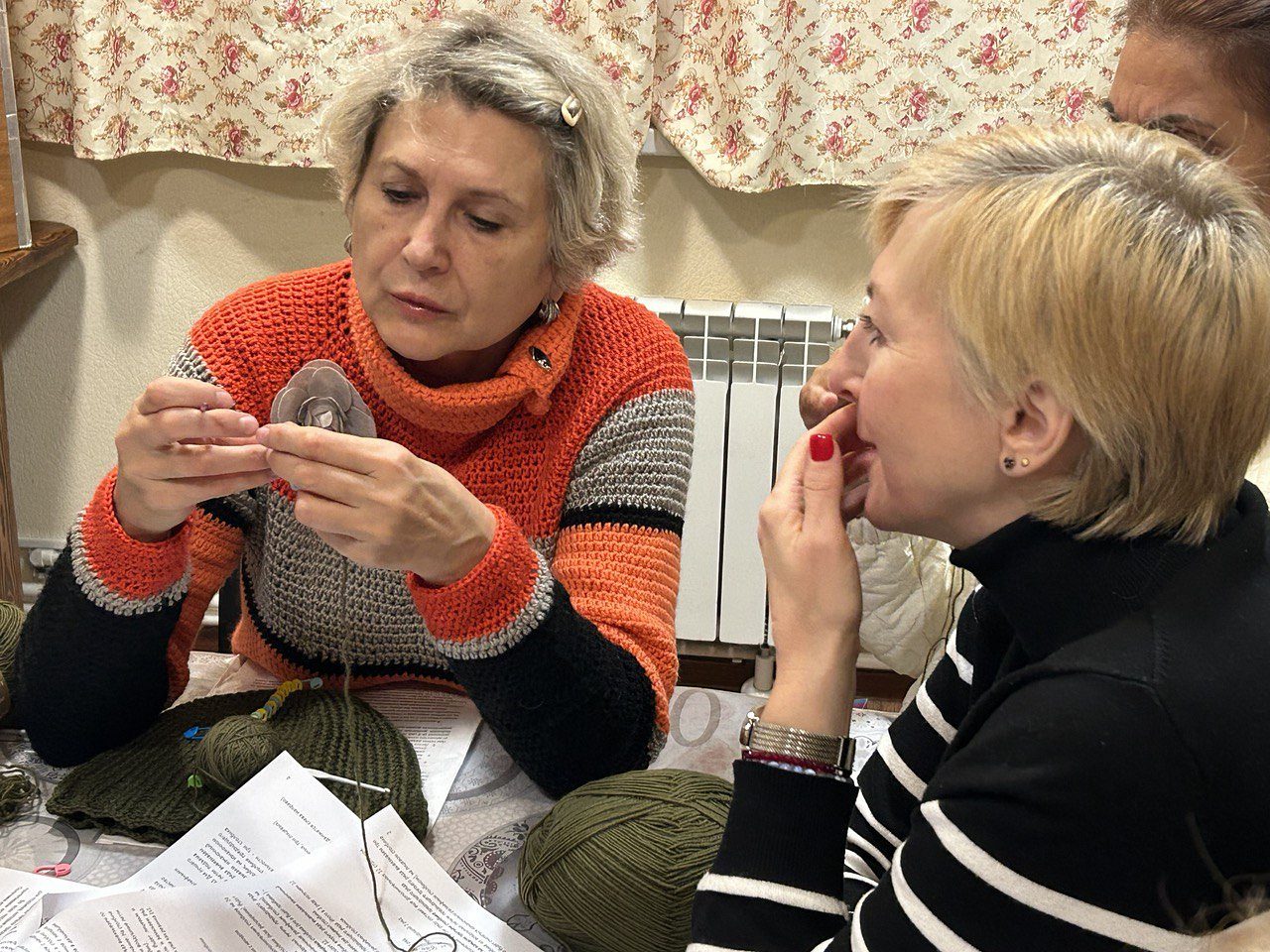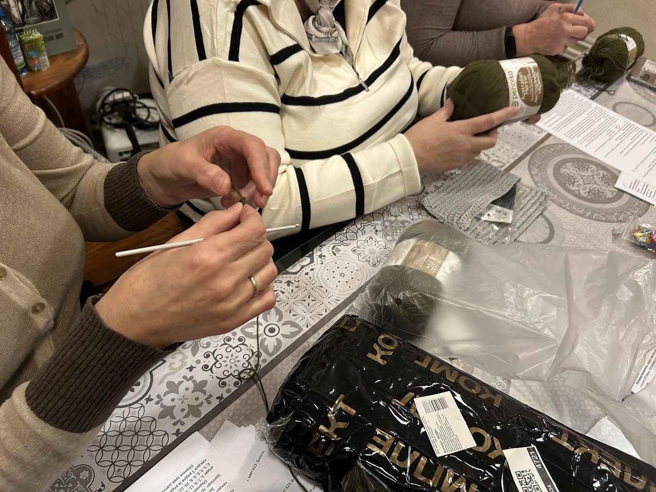 Провела мастер-класс опытный мастер и прихожанка храма Священномученика Ермогена в Зюзине Новожилова Надежда Викторовна. Предварительно был собран материал - закуплена пряжа и крючки для вязания оптимальной модели шапок, распечатаны пошаговые инструкции с описанием работы. Надежда Викторовна подробно объясняла каждый этап вязания, отвечала на вопросы. Более опытные вязальщицы помогали начинающим. Большинство участников мастер-класса освоили основные приемы вязания, разобрали схему вязания и по окончании занятия смогли взять пряжу для самостоятельного завершения работы дома.
