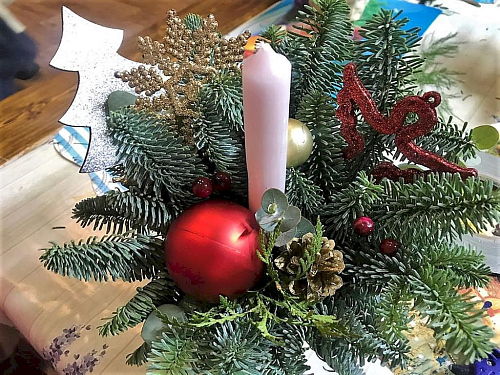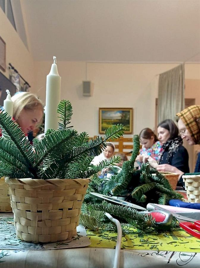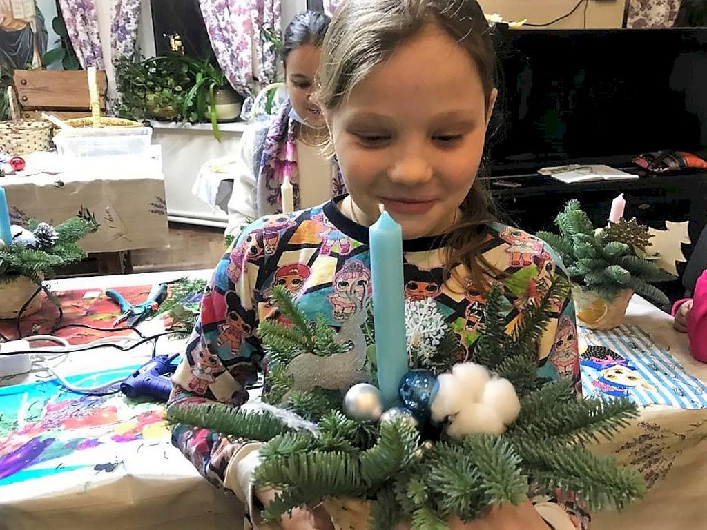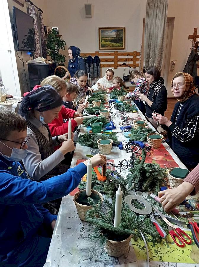 10 и 12 декабря 2021 года в Воскресной школе "Исток" храма священномученика Ермогена в Зюзине состоялись мастер-классы для родителей и детей старшего возраста по изготовлению декора со свечой на праздничный стол и Рождественских венков, которые стали уже традиционными в преддверии Рождественских праздников.