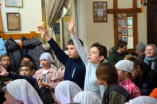 Ребята поделились на команды и отвечали на вопросы, касающиеся знания Священного Писания, устройства храма. Отдельным раундом игры стали «Вопросы от батюшки» - самые сложные и интересные!