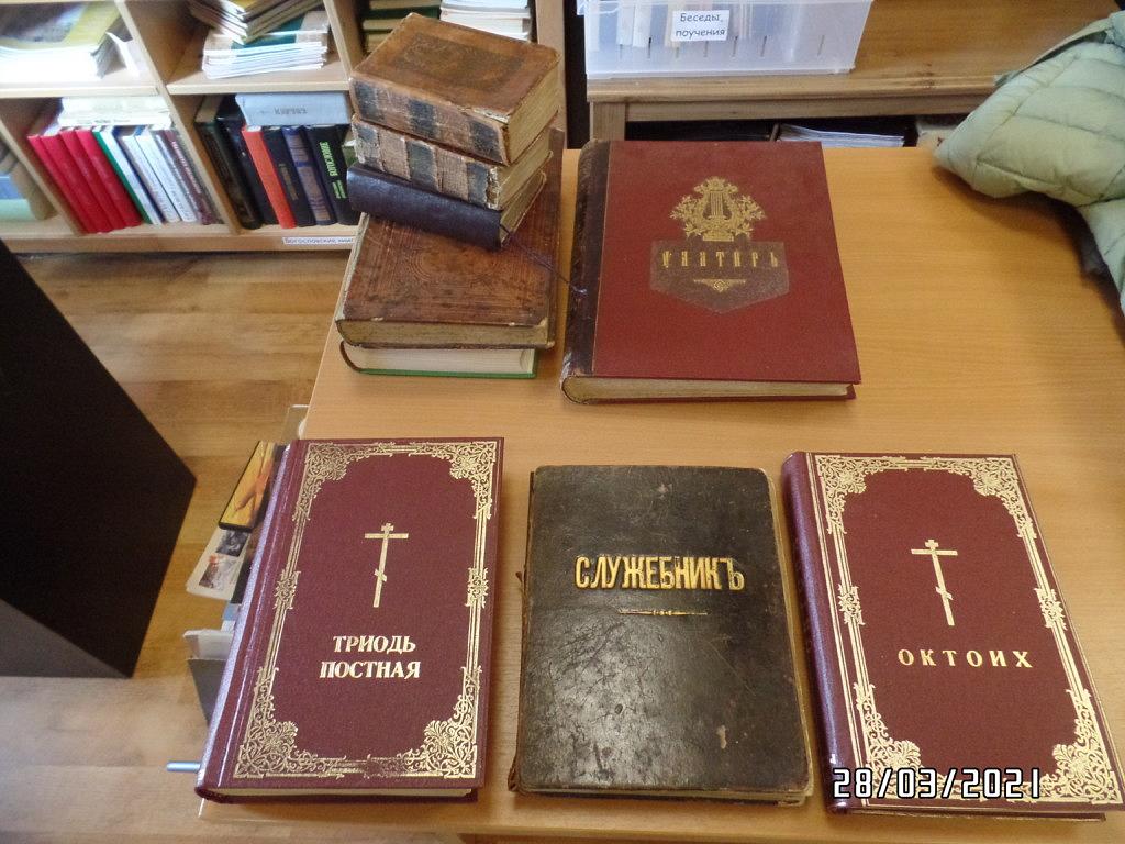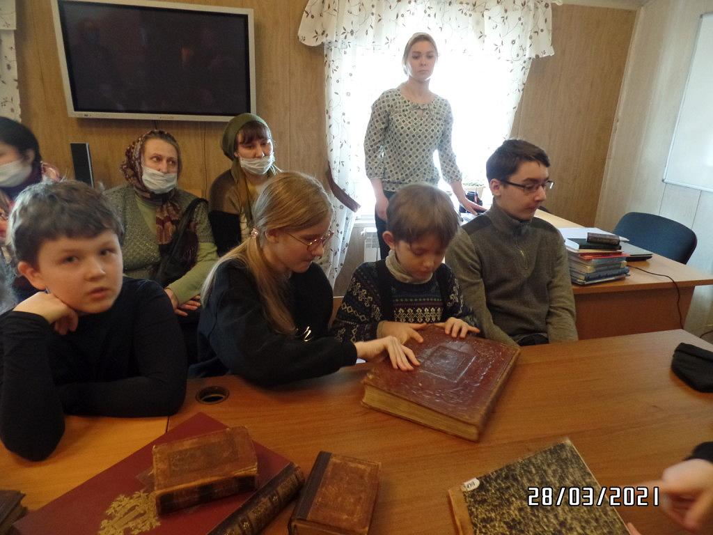 Настоятель храма иерей Максим Глухих познакомил слушателей с редкими старопечатными богослужебными и церковными изданиями. Среди них был канонник1659 г. , а также патерик и Житие св. преподобного Антония, игумена Киево-Печерского. Свой рассказ настоятель сопровождал показом старинных книг, которые все могли подержать в руках и посмотреть.