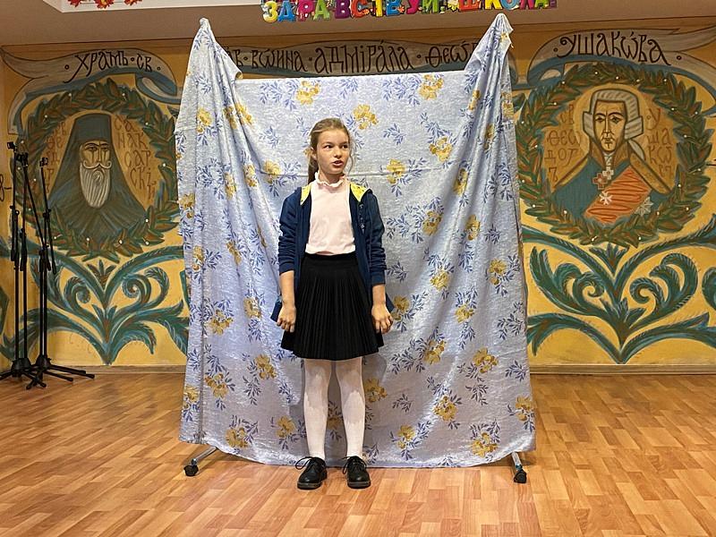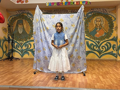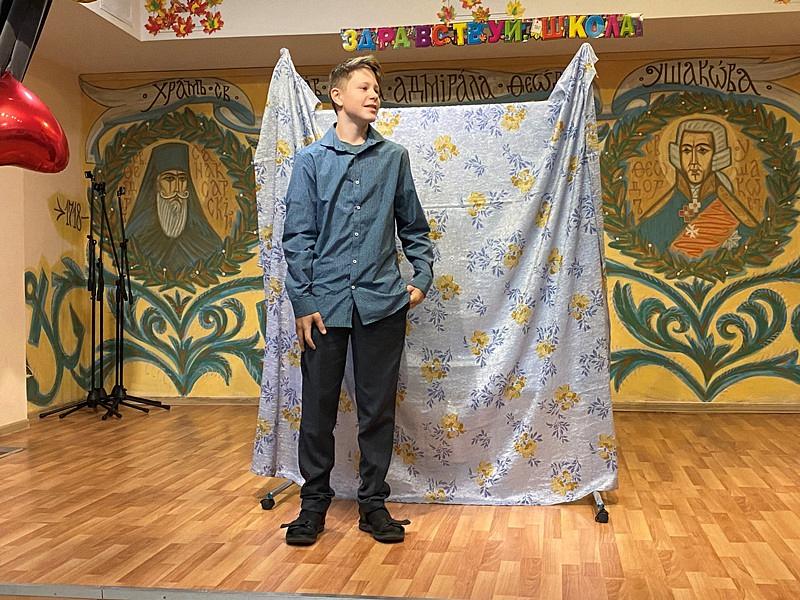 Далее сами ребята выступили и рассказали стихи. Прочитал стихи современного автора руководитель Театральной студии Владимир Георгиевич Егоров. Игумен Дамиан тоже прочитал стихи, автором которых является директор школы 1161 в Южном Бутове Макаров Александр Сергеевич.