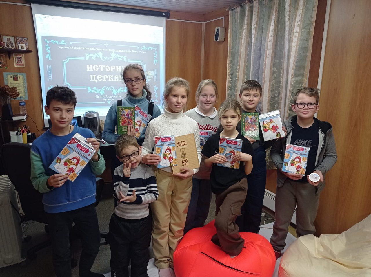 Победители получили от преподавателей памятные подарки – книги по истории Церкви и церковнославянскому языку, и все – сладкие подарки. В честь новогодних каникул ребятам также были вручены наборы для поделки-открытки.