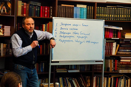 26 декабря 2021 года в библиотеке Воскресной школы храма святых мучеников и страстотерпцев Бориса и Глеба в Зюзине состоялась очередная лекция преподавателя школы, магистранта ПГУ В.В. Глушенкова из цикла «Православная педагогика».