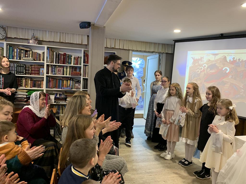 После завершения представления настоятель храма иерей Илия Власов тепло поблагодарил руководителя Аллу Викторовну и учащихся Воскресной школы за подготовку и проведение интересного и яркого спектакля, а также вручил всем детям традиционные рождественские подарки.