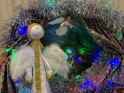 Руками учеников и их родителей были сделаны персонажи для кукольного представления. Центром действия стал Рождественский вертеп: скромная пещера, в которой родился Младенец Христос. Каждый участник спектакля озвучивал библейского персонажа из числа участников событий Рождества. Во время спектакля дети исполнили несколько Рождественских песнопений в фольклорном стиле.