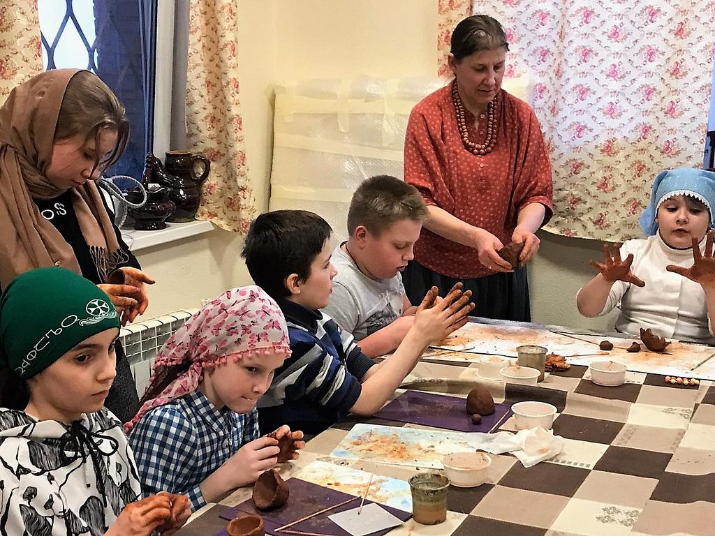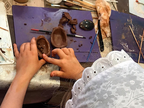 Дети с увлечением погрузились в процесс создания из бесформенного куска глины свои поделки, делая глину «живой». Творчество проходило в сопровождении захватывающих историй мастера - сравнения, аллегории, истории и выразительные примеры, которые в процессе работы помогли ребятам точнее понять технику лепки, понять приёмы создания правильной формы изделий.