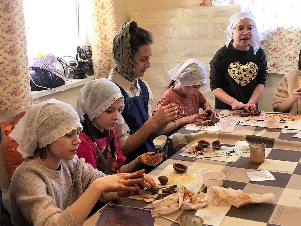 18 и 19 марта 2023 года в Воскресной школе "Исток" храма священномученика Ермогена, Патриарха Московского и всея Руси, чудотворца, в Зюзине, для всех учащихся прошли мастер-классы по лепке из красной глины и росписи пасхальных колокольчиков и пасхальных яиц.