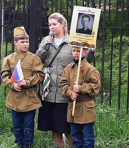 В исполнении детей и родителей прозвучали стихи и песни военных лет такие как "Катюша", " Москвичи", "Журавли" и др. Ребята принесли портреты своих родных героев и рассказали об их подвиге.