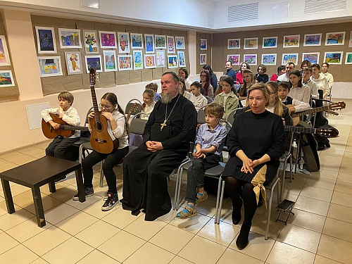 После открытия выставки состоялся концерт гитарной музыки. В Воскресной школе много лет был кружок игры на гитаре, под руководством Карпова Виктора Вячеславовича, в котором многие ребята получили первые навыки и развивали свои музыкальные способности. Выступило около десяти ребят. Их выступления сопровождались поддержкой зала и аплодисментами.