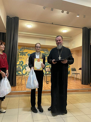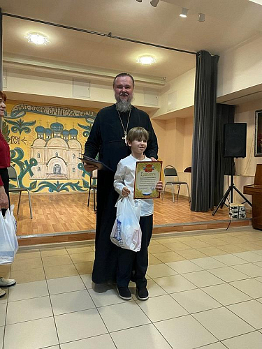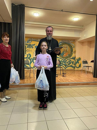 После концерта настоятель тепло поблагодарил ребят и наставников за их труд и творчество, которым в пасхальные дни они поделились и порадовали присутвующих. Далее игумен Дамиан вручил грамоты и благодарственные письма участникам концерта. Вместе с документами настоятель вручил каждому набор пасхальных угощений.
