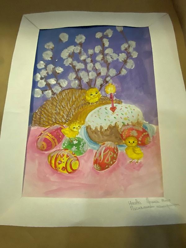 Открыл выставку настоятель храма игумен Дамиан (Залетов), который обратился к собравшимся детям, родителям, педагогам, прихожанам и гостям с пасхальным приветствием и рассказал о работе Воскресной школы и ее кружков, детском творчестве, важности развития художественных способностей у ребят, выявлению талантов. Все это делается в студии рисования, которую ведет Клюкина Ирина Александровна. Настоятель передал слово Ирине Александровне, которая рассказала о своей работе и о выставке.