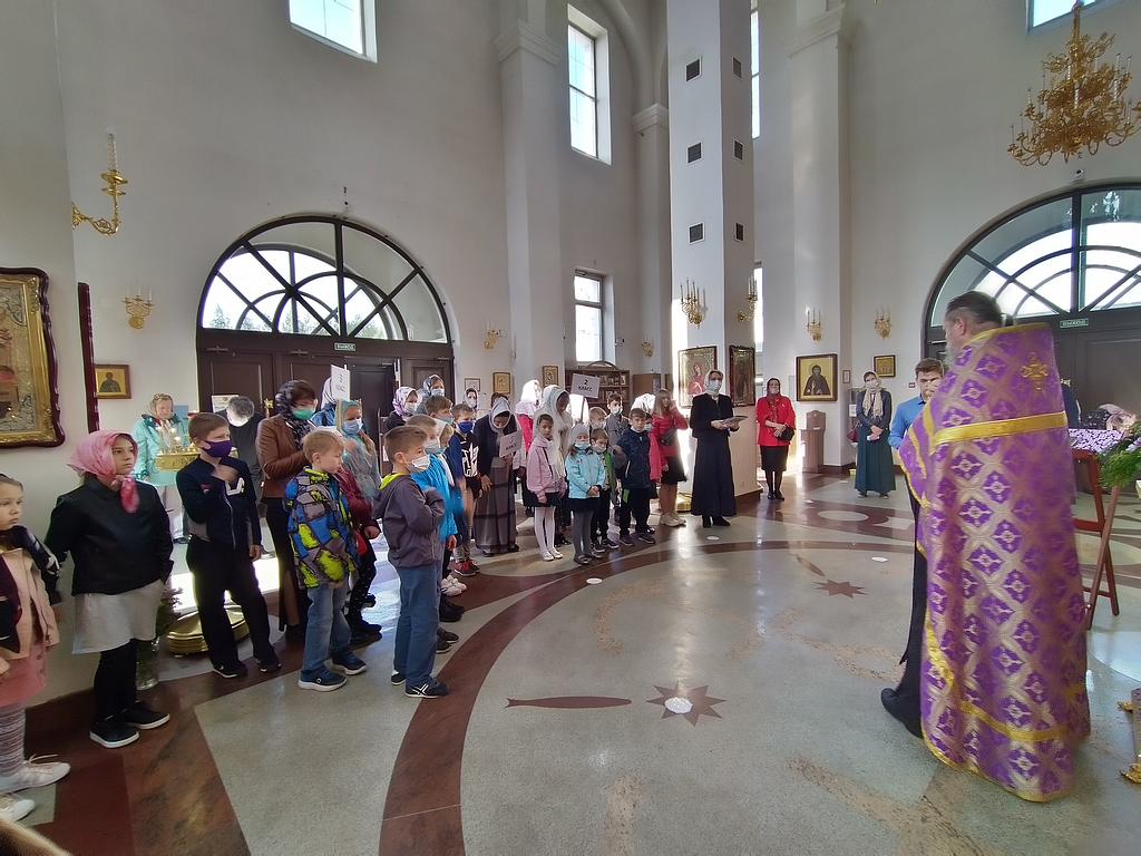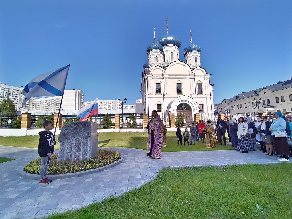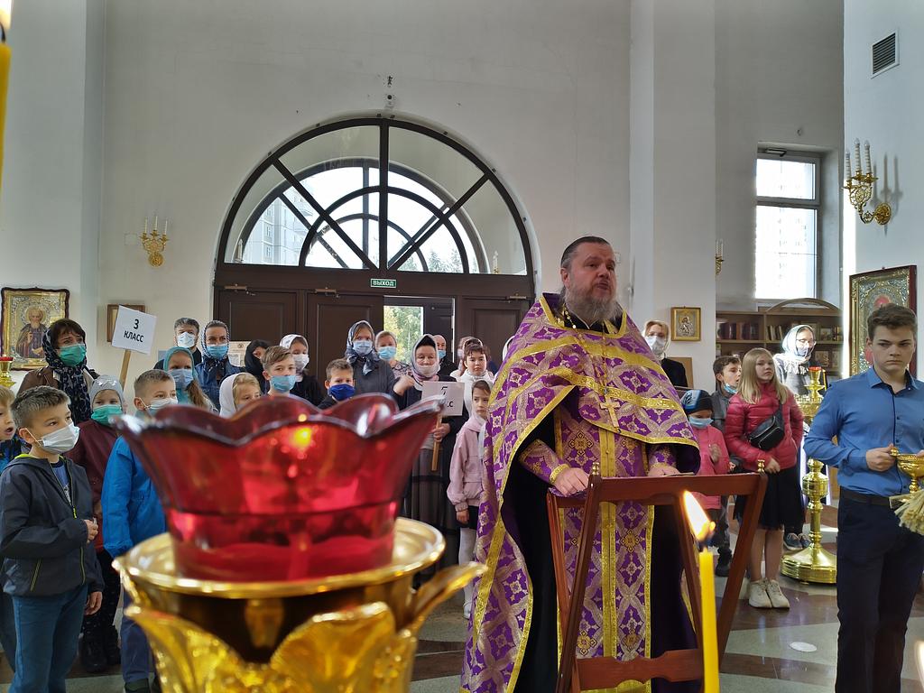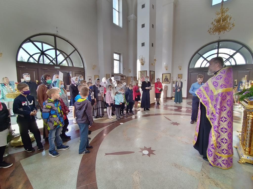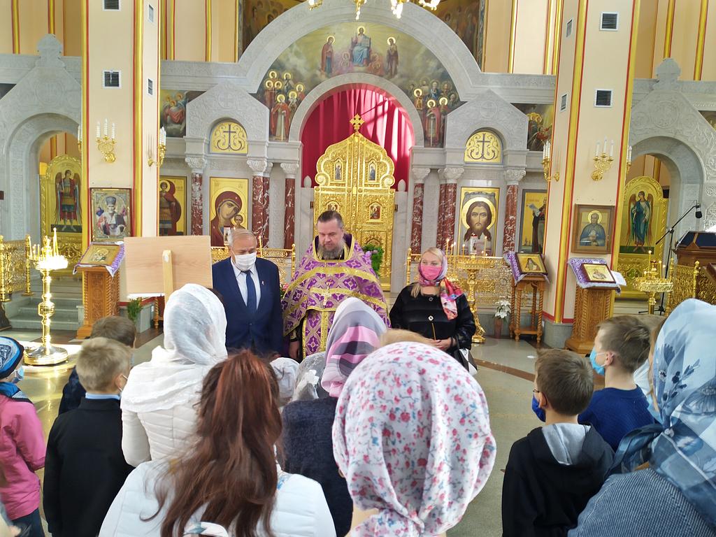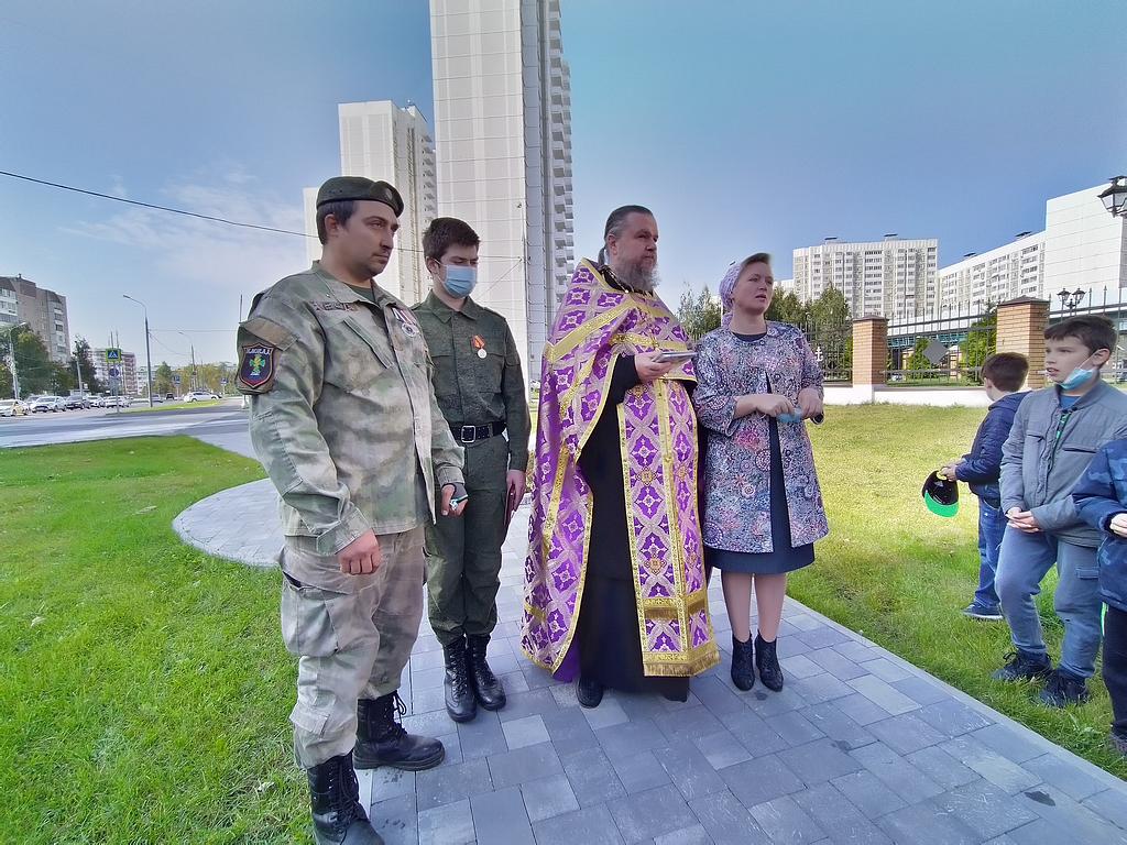 Воскресный день начался для детей в храме, на Литургии в день празднования Воздвижения Креста Господня, после чего настоятель пригласил всех на заупокойную литию к памятному камню на Аллею народной доблести.