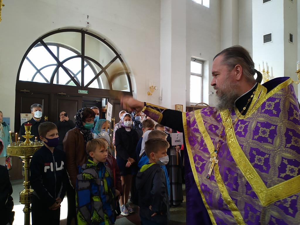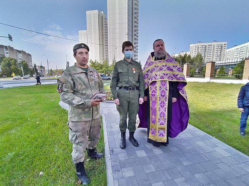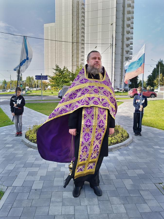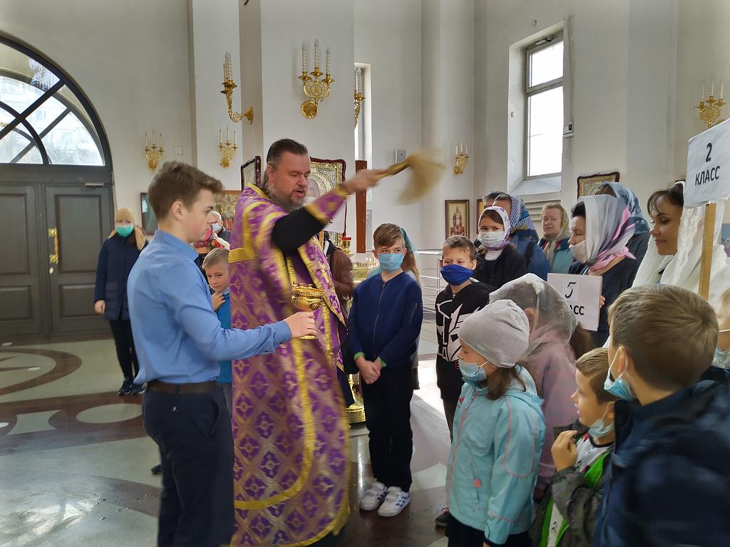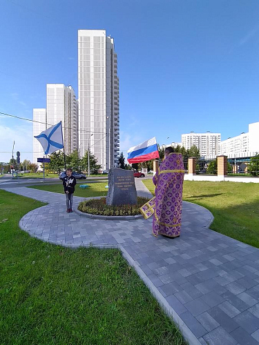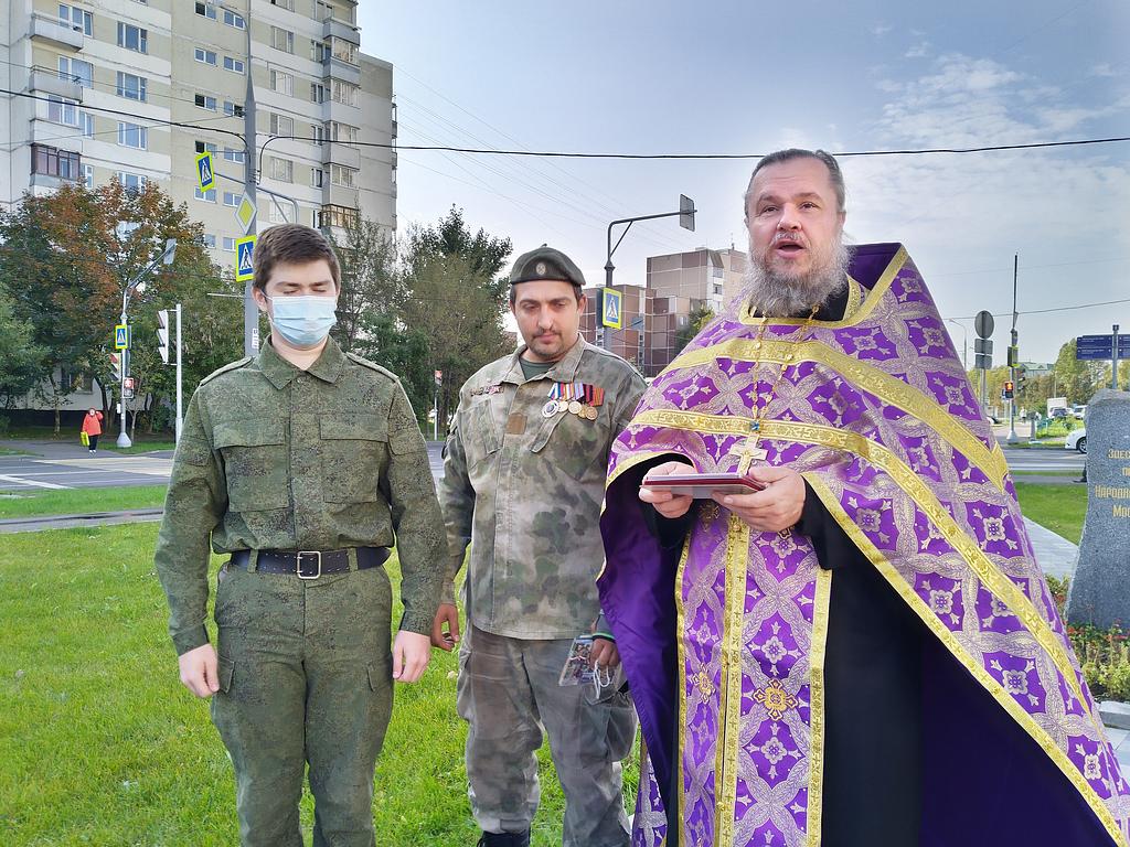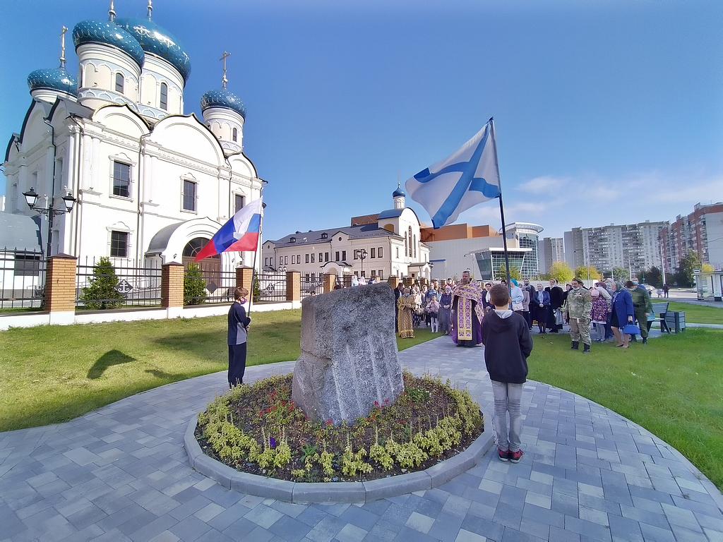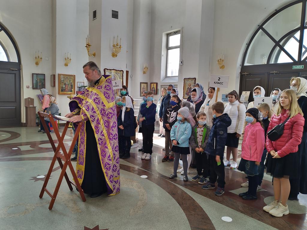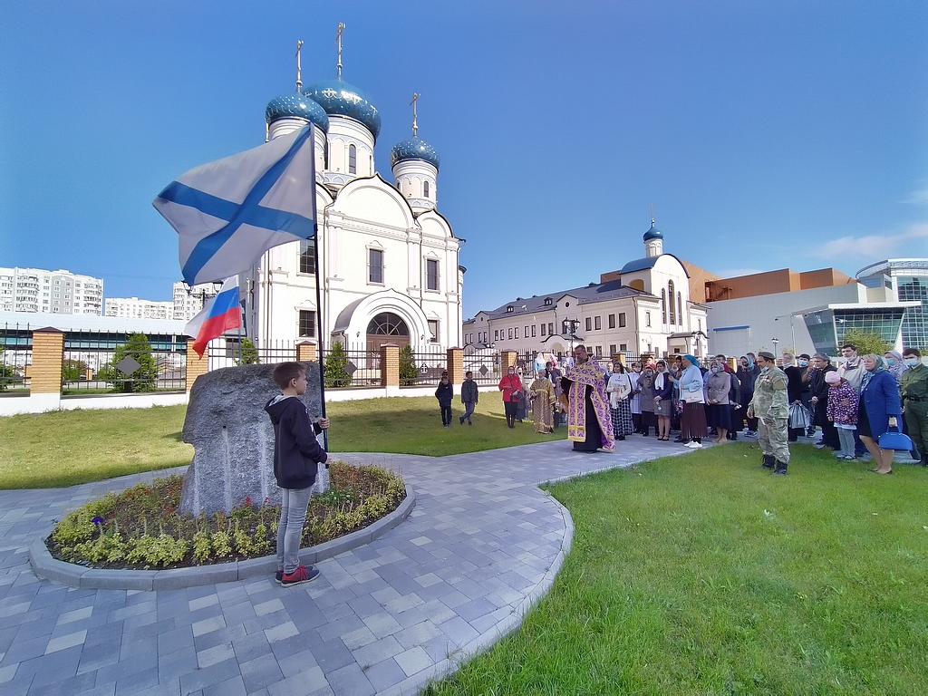 Воскресный день начался для детей в храме, на Литургии в день празднования Воздвижения Креста Господня, после чего настоятель пригласил всех на заупокойную литию к памятному камню на Аллею народной доблести.