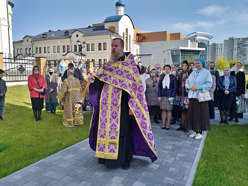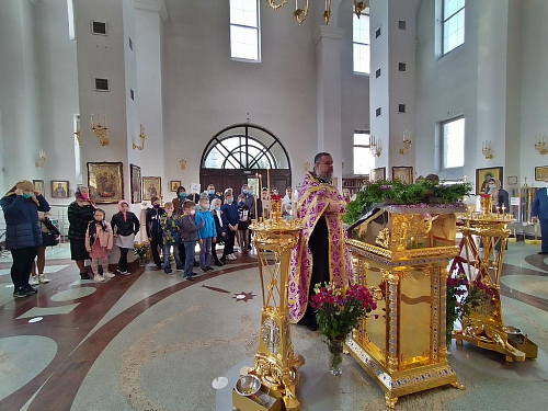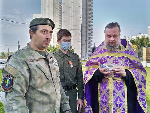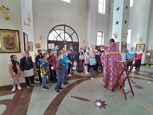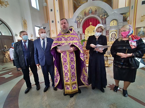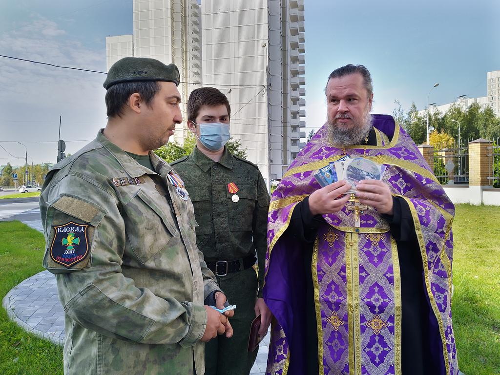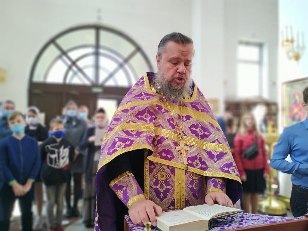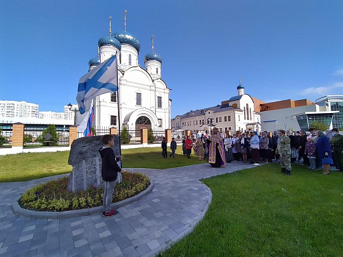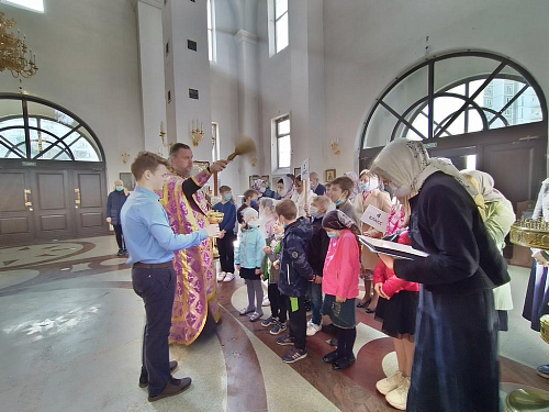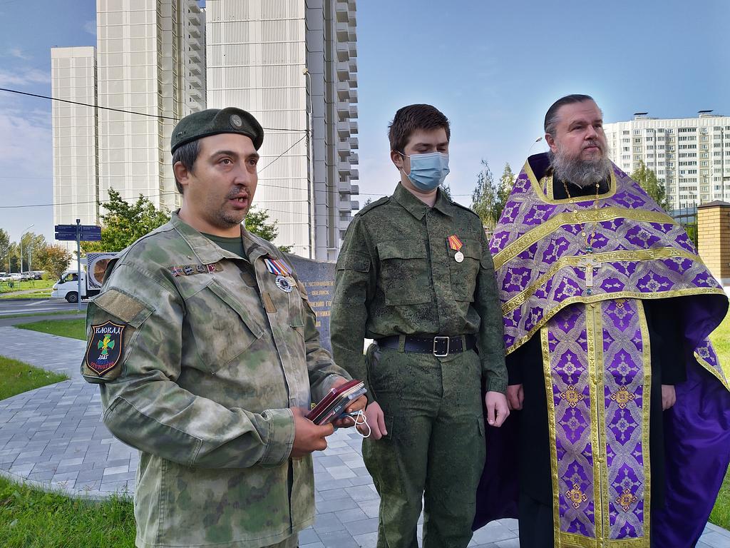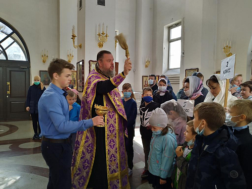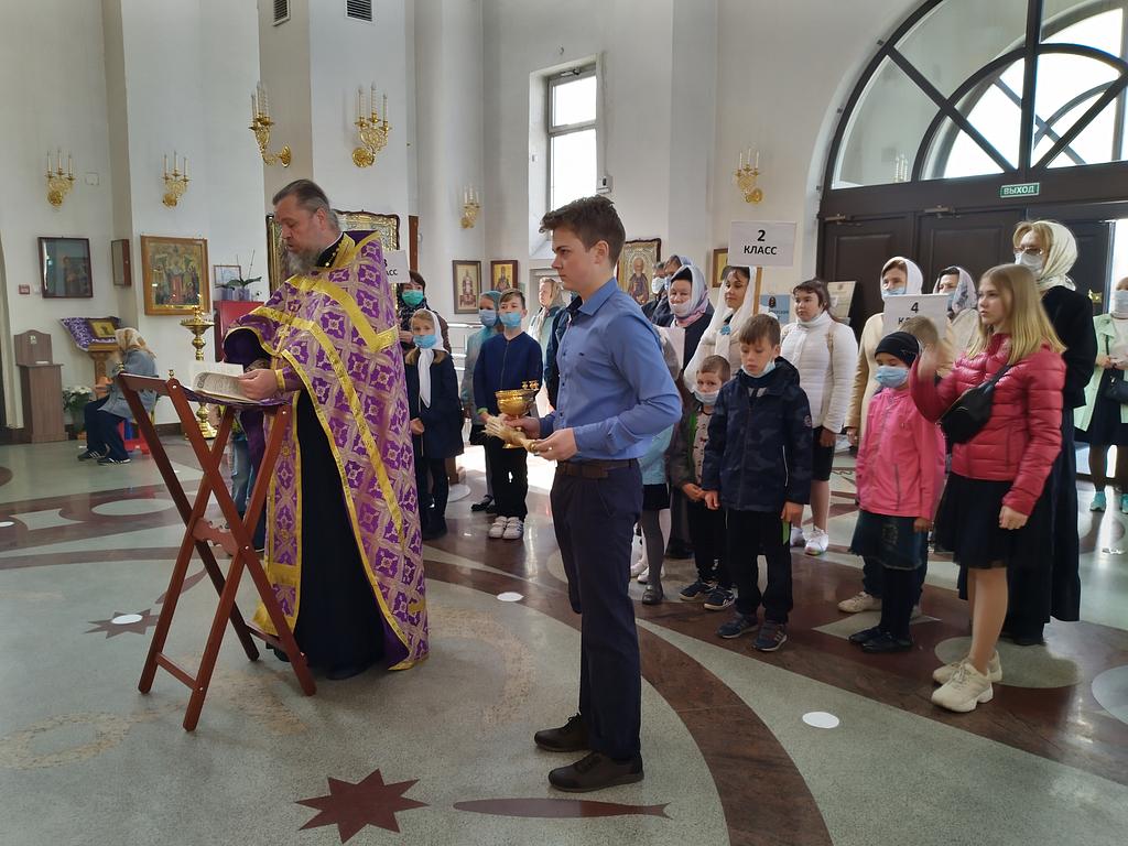 Воскресный день начался для детей в храме, на Литургии в день празднования Воздвижения Креста Господня, после чего настоятель пригласил всех на заупокойную литию к памятному камню на Аллею народной доблести.