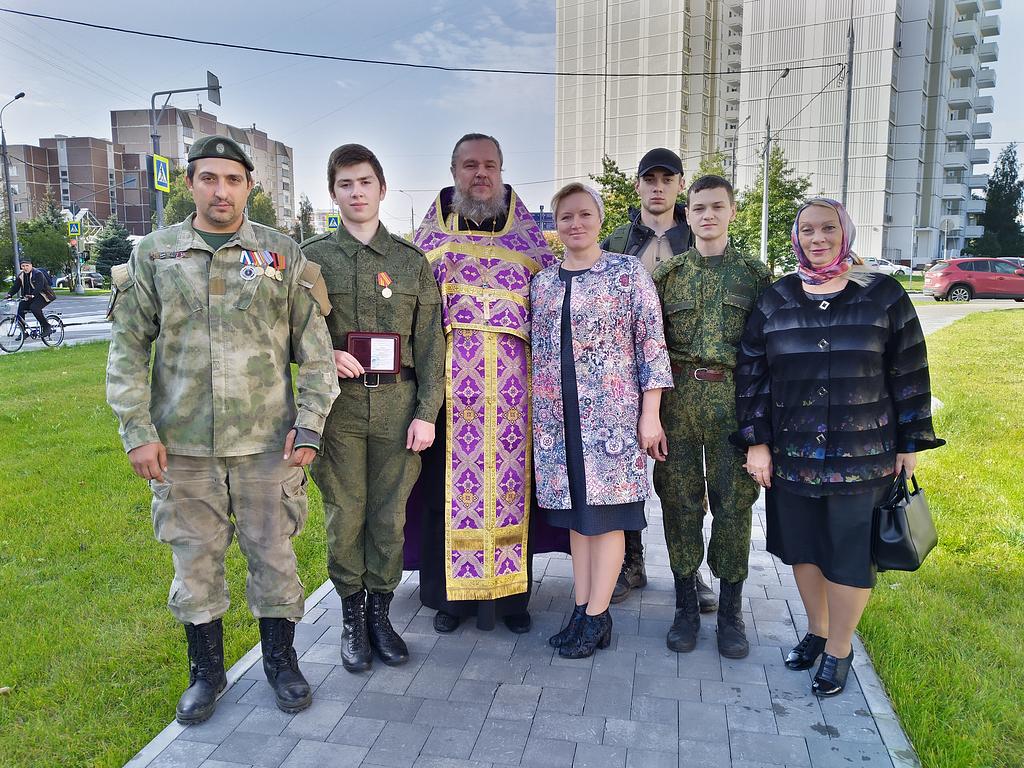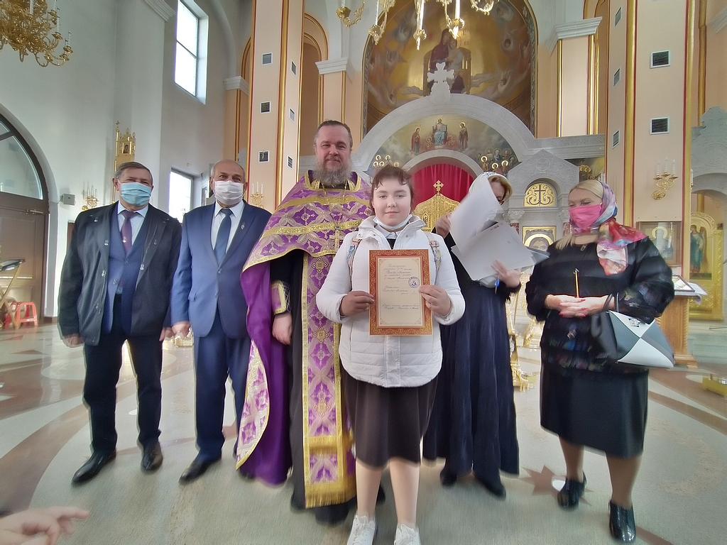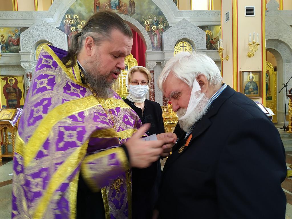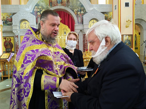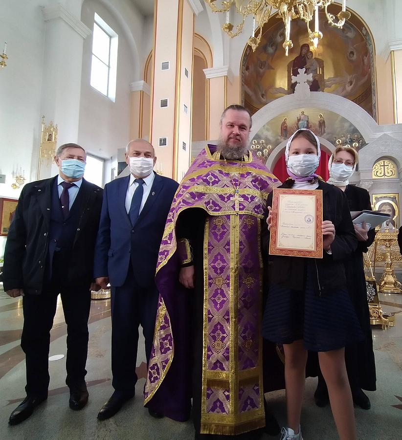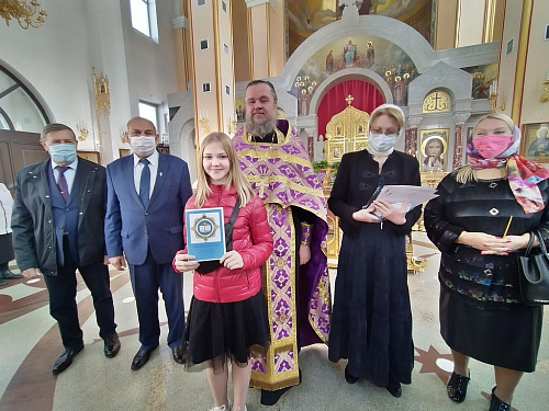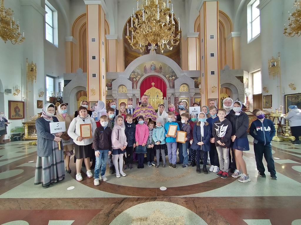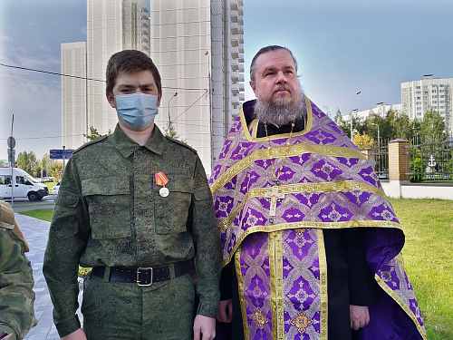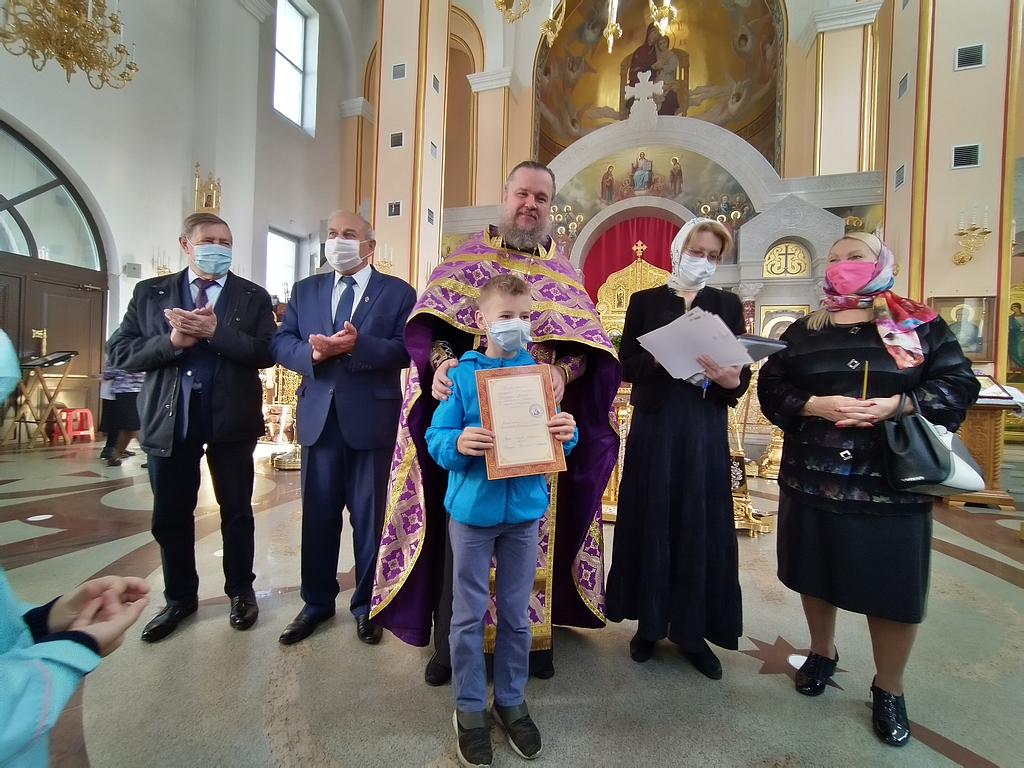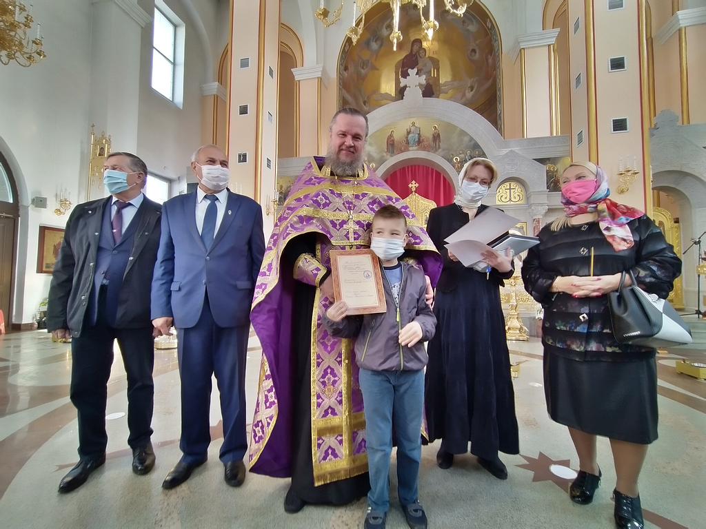 По окончанию молитвы дети, педагоги и родители вернулись в храм на молебен о начале учебного года, после которого настоятель наградил почетными грамотами детей, проявивших активность в предыдущем учебном году, родителей, а также старейшего педагога – бессменного руководителя театральной студии Подворья, режиссера, актера, Егорова Владимира Георгиевича. Также были выданы несколько Свидетельств об окончании курса обучения.