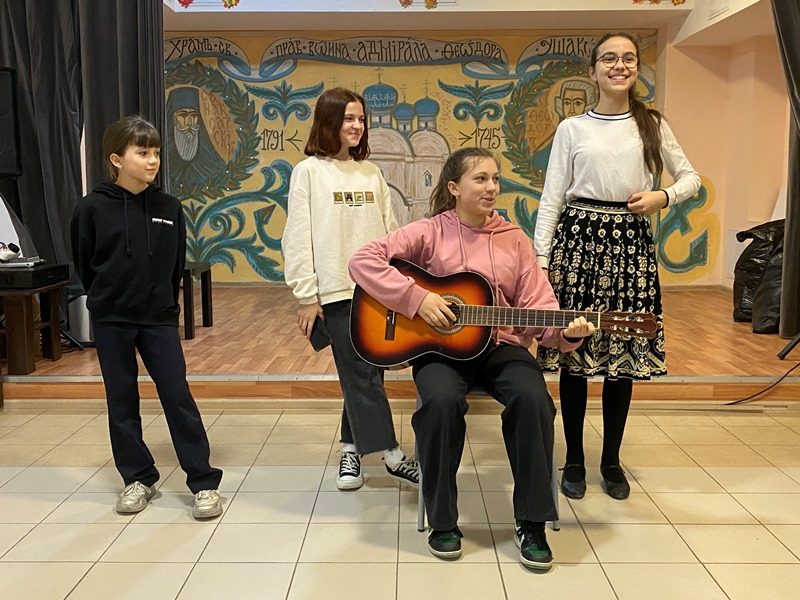 В ходе выступления свои таланты продемонстрировали многие учащиеся Воскресной школы: были прочитаны стихи, пелись песни, ребята играли на гитарах и пианино, был представлен даже акробатический номер. Было весело и всем хотелось выступить еще раз. Все вместе присутствующие пропели известную военную песню "Катюша", а также песню канадского певца и поэта Леонарда Коэна "Аллилуйя".