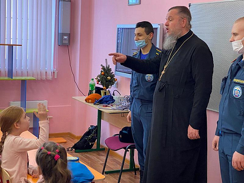 Открыл важную и интересную встречу настоятель Подворья игумен Дамиан (Залетов), который представил ребятам гостей и сам поговорил с ними о важности обсуждаемых вопросов. Ребята с интересном восприняли тему и правильно отвечали на вопросы о безопасности дома и на улице в разных ситуациях.