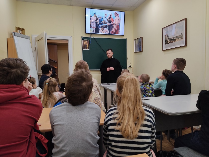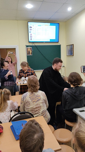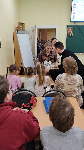 18 декабря, в грядущие дни памяти святителей и чудотворцев Николая, архиепископа Мир Ликийских, и Спиридона, епископа Тримифунтского, в Воскресной школе при храме преподобной Евфросинии, великой княгини Московской, в Котловке прошел открытый урок на тему «Святители Христовы Николай и Спиридон: пример любви, милосердия и доброты».