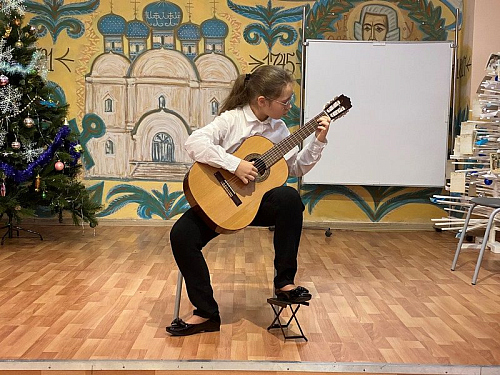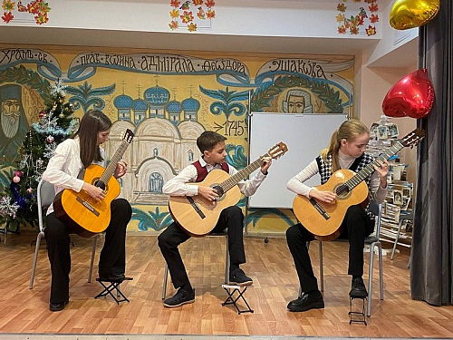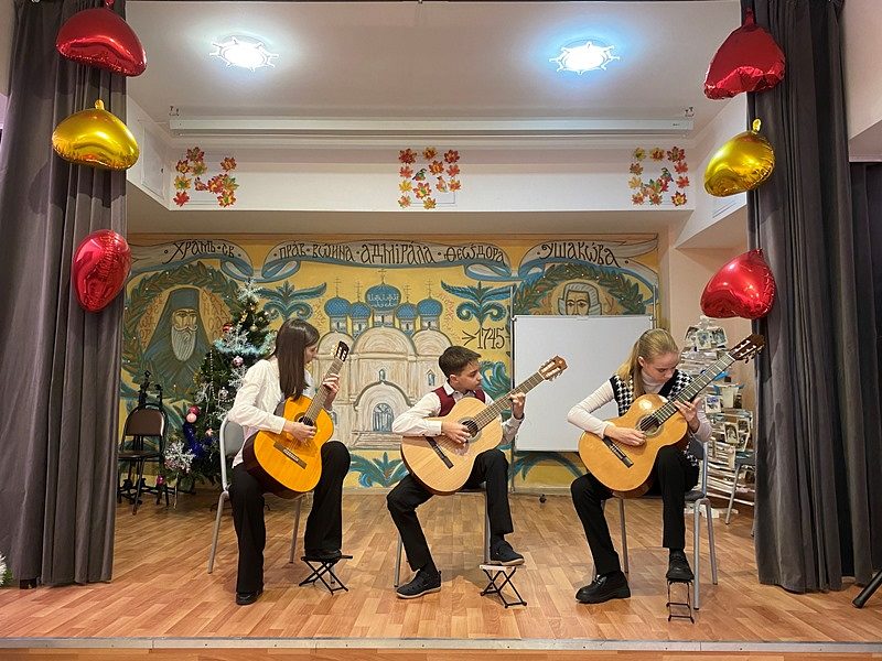 Ребята исполняли различные произведения на гитарах, пианино и аккордеонах. Были следующие номера: