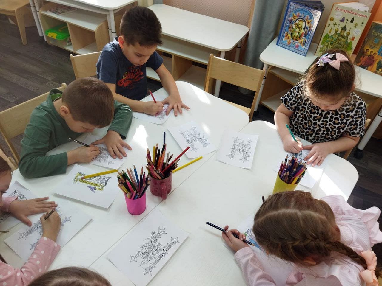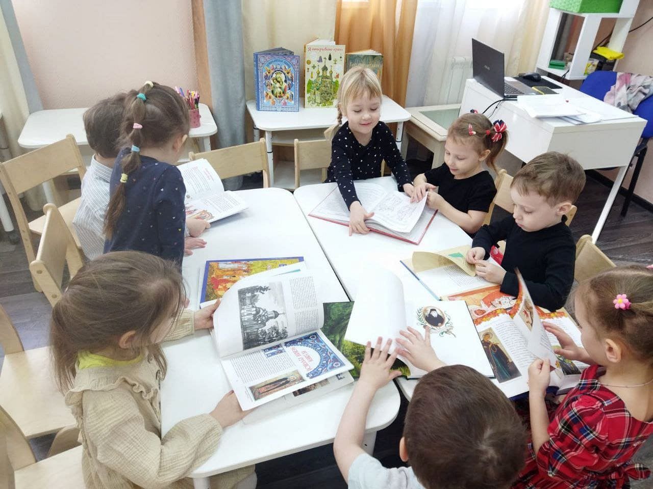 На занятиях в разных возрастных группах дети узнали о первопечатнике диаконе Иване Федорове, о книге «Апостол», познакомились с особенностями церковнославянских книг – яркими буквицами, начинающими главы книг, и церковнославянской азбукой. В старших группах изучали старинную богослужебную книгу, подаренную воскресной школе, пытались читать церковно-славянский текст.