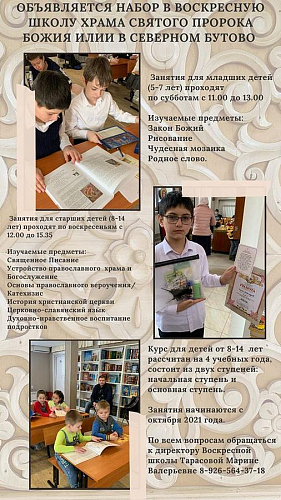 В конце сентября-начале октября начинается новый учебный год в воскресных школах столицы. Сегодня эти учебные заведения зачастую оборудованы по последнему слову техники. Здесь есть комфортные классы с современными проекторами, мультимедийная аппаратура, удивительные кружки и секции. Однако главной особенностью воскресных школ, конечно, является теплая дружеская атмосфера. В Юго-Западном округе воспитанники школ при храмах могут выбрать занятия на любой вкус: от секции шахмат до студии плетения волос.