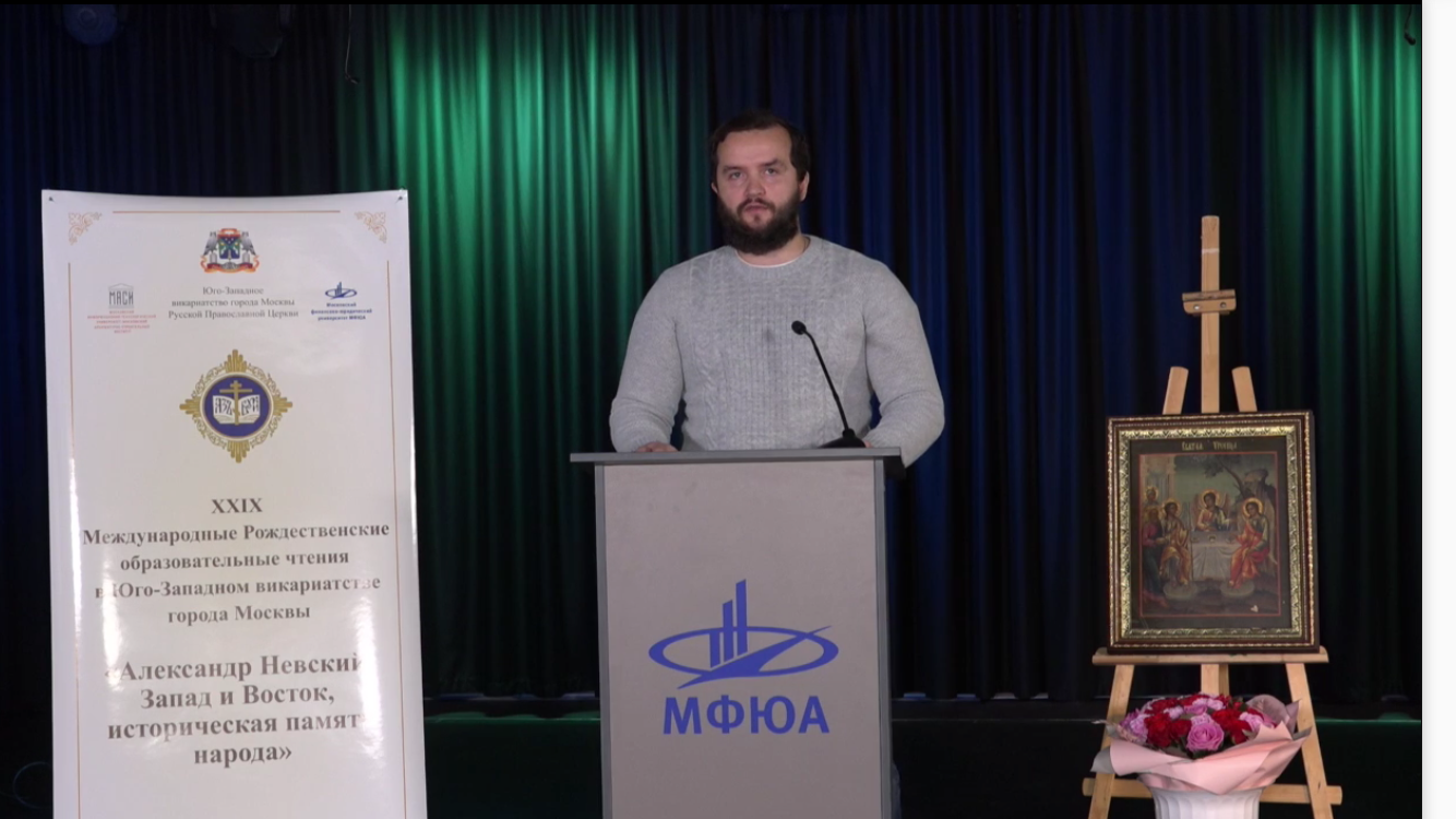 Пленарное заседание открыл Помощник управляющего Юго-Западным викариатством по взаимодействию с Вузами и научным сообществом, и.о. настоятеля храма Святого князя Владимира и Святой княгини Ольги в Черёмушках Протоиерей Владимир Быстрый с докладом на тему «Значение подвига Святого благоверного князя Александра Невского в истории Церкви и Российского Государства»