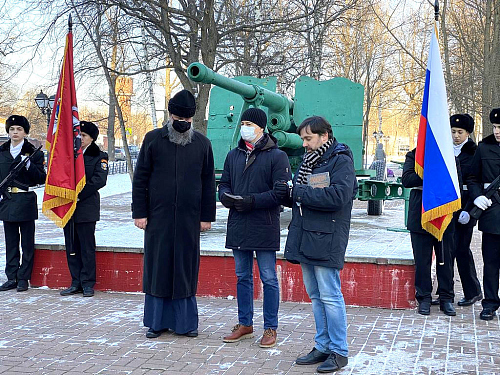 Мероприятие завершилось возложением цветов к памятнику - военной зенитной пушке.