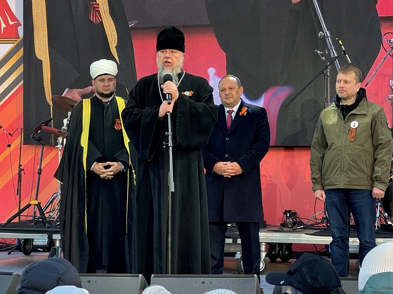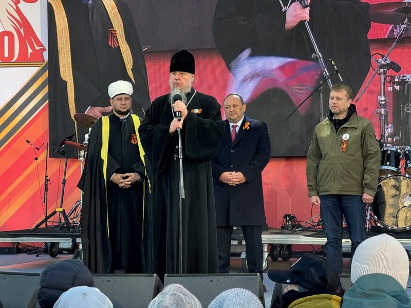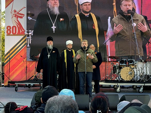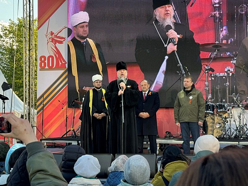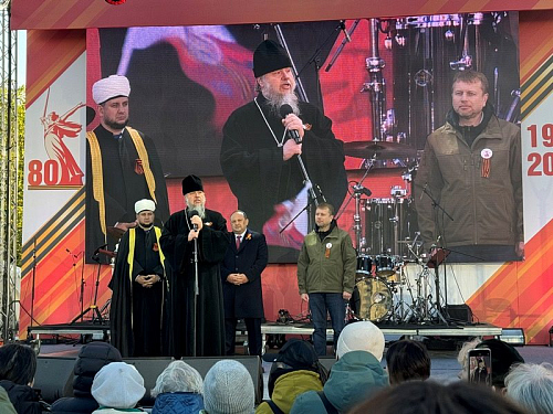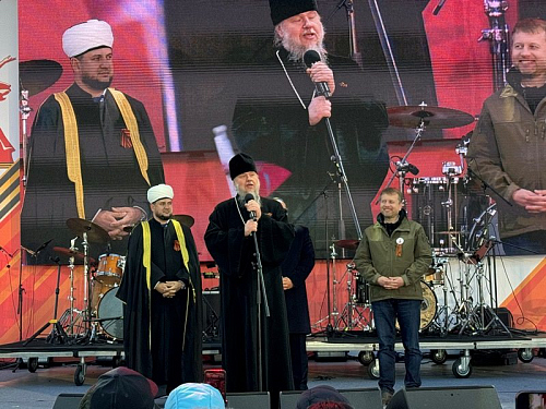 С размышлением о Дне Победы, призывом к духовной бодрости и любви к Родине, особенно молодежи, кадетам и юнармейцам, светлому настрою и пасхальной радости обратился ко всем игумен Дамиан. Он призвал помнить не только о прошлой Победе, но и приближать нынешнюю Победу в СВО и всегда жить с победным духом в свой личной жизни. Завершил свое слово игумен Дамиан поздравлением всех присутствующих с Пасхой Христовой и традиционным пасхальным приветствием: "Христос Воскресе!", а также провозгласил "Ура!" России, ее народу и воинству, что радостно поддержали все присутвующие на празднике люди вместе с пасхальным привествием "Воистину Воскресе!".