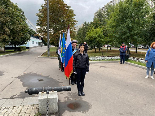 Торжественное построение прошло на площади у памятника-бюста непобедимого адмирала Флота Российского Федора Федоровича Ушакова у станции метро «Улица Скобелевская».