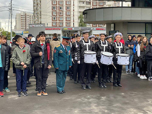 Перед началом мероприятия перед собравшимися прошел отряд кадетов-барабанщиков из школы 1883. После этого знаменная группа внесла флаги России, города Москвы, района Южное Бутово и кадетского класса школы 1883. Прозвучал Государственный гимн.