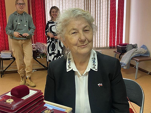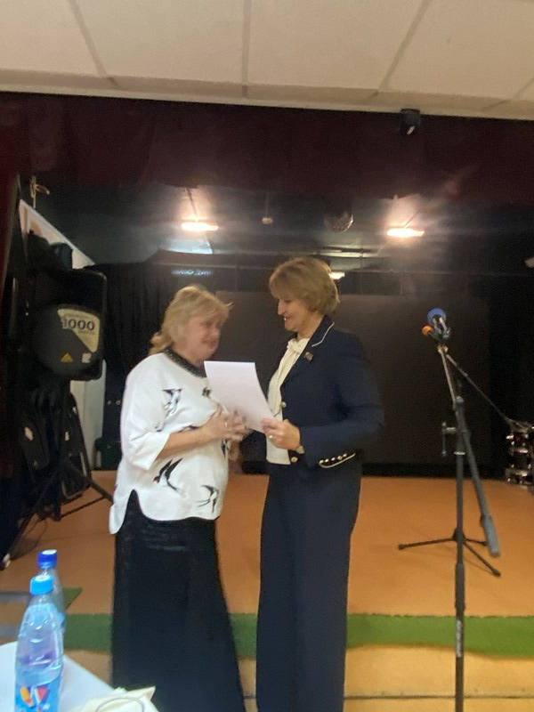 Официальную часть открыла словами поздравления и приветствия депутат Мосгордумы Гусева Людмила Ивановна. Она отметила большой вклад, который сделали ветераны и Совет в патриотическое воспитание молодежи, и поблагодарила всех за самоотверженный труд. Людмила Ивановна вручила членам Совета ветеранов почетные грамоты и благодарственные письма. На память о празднике она подарила в Совет ветеранов панно с видом здания Мосгордумы.