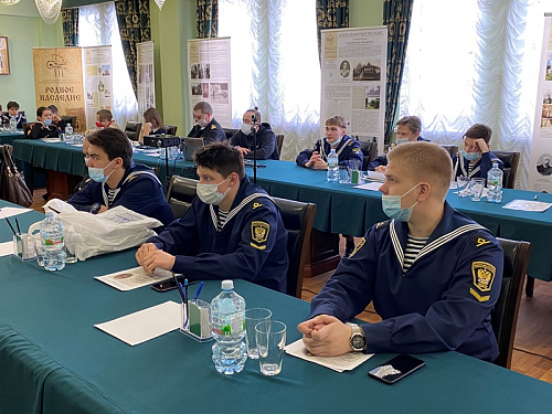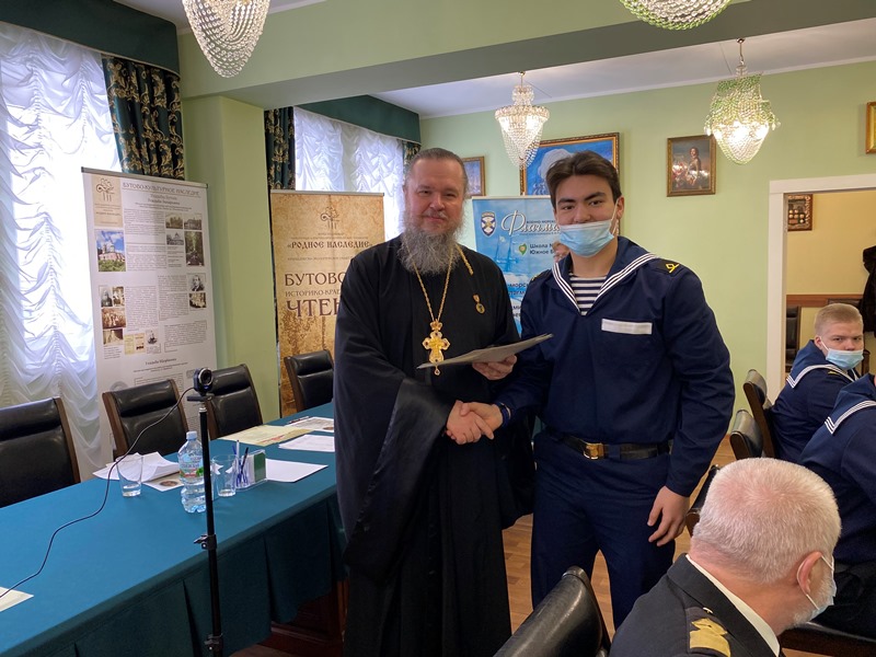 В этом году основные доклады конференции, подготовленные обучающимися бутовских школ и колледжа, были посвящены памятным и знаменательным датам русского флота. К. Миронова (Школа № 1883 «Бутово») рассказал о первом русском воинском уставе, который был принят в нашей стране ровно 450 лет назад. Доклад А. Краснеевой (Школа № 1981) был посвящен истории Балтийского флота, которому в этом году исполняется 320 лет. Балтийскую тему продолжил З. Афанасьев (ГБОУ Школа № 1161), представивший историю Балтийского флота в начальный период Великой Отечественной войны 1941-1945 гг.». Яркое выступление курсанта колледжа АВТ РУТ (МИИТ) И. Штыкова было посвящено юным защитникам первой обороны Севастополя. А завершающим докладчиком стала Д. Смирнова (Воскресная школа), которая рассказала о жизни и судьбе святого адмирала Ф. Ушакова, а также о том, что в 2021 году исполняется 20 лет со дня прославления адмирала Ушакова в лике святых Русской Православной Церкви.