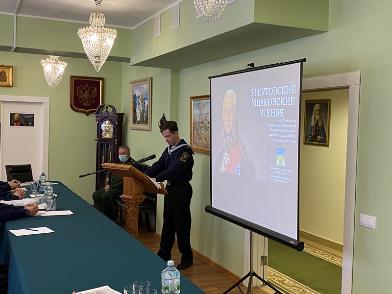 В традиционной конференции, прошедшей в доме причта храма святого праведного воина Феодора Ушакова в Южном Бутове, приняли участие воспитанники военно-морского клуба «Флагман» имени контр-адмирала В.Ф. Руднева (ГБОУ Школа № 1161), Музея боевой славы ВМФ имени Ушакова (ГБОУ Школа № 1883 «Бутово»), юнармейского отряда ГБОУ Школа № 1981, Воскресной школы и Навигацкого класса при храме Феодора Ушакова и курсанты колледжа Академии водного транспорта Российского университета транспорта.